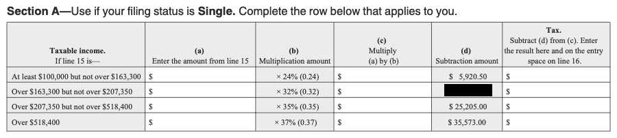 Can you deduce the exact number I have blacked out in this table from an IRS publication?