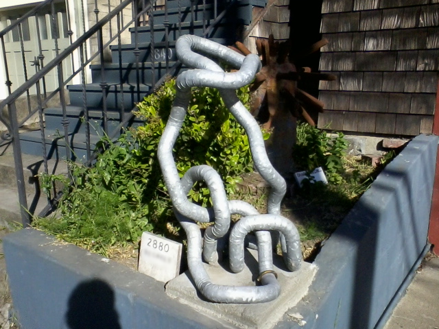 The title is 2880 Degrees—fitting*, as the sculpture is made of 32 right-angled elbow pipes.