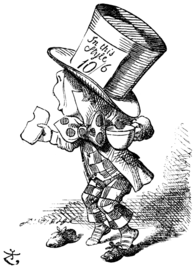 As for the bonus puzzle... the Mad Hatter sports a 10/6, which reduces to 5/3, the logo of Fifth Third Bank.