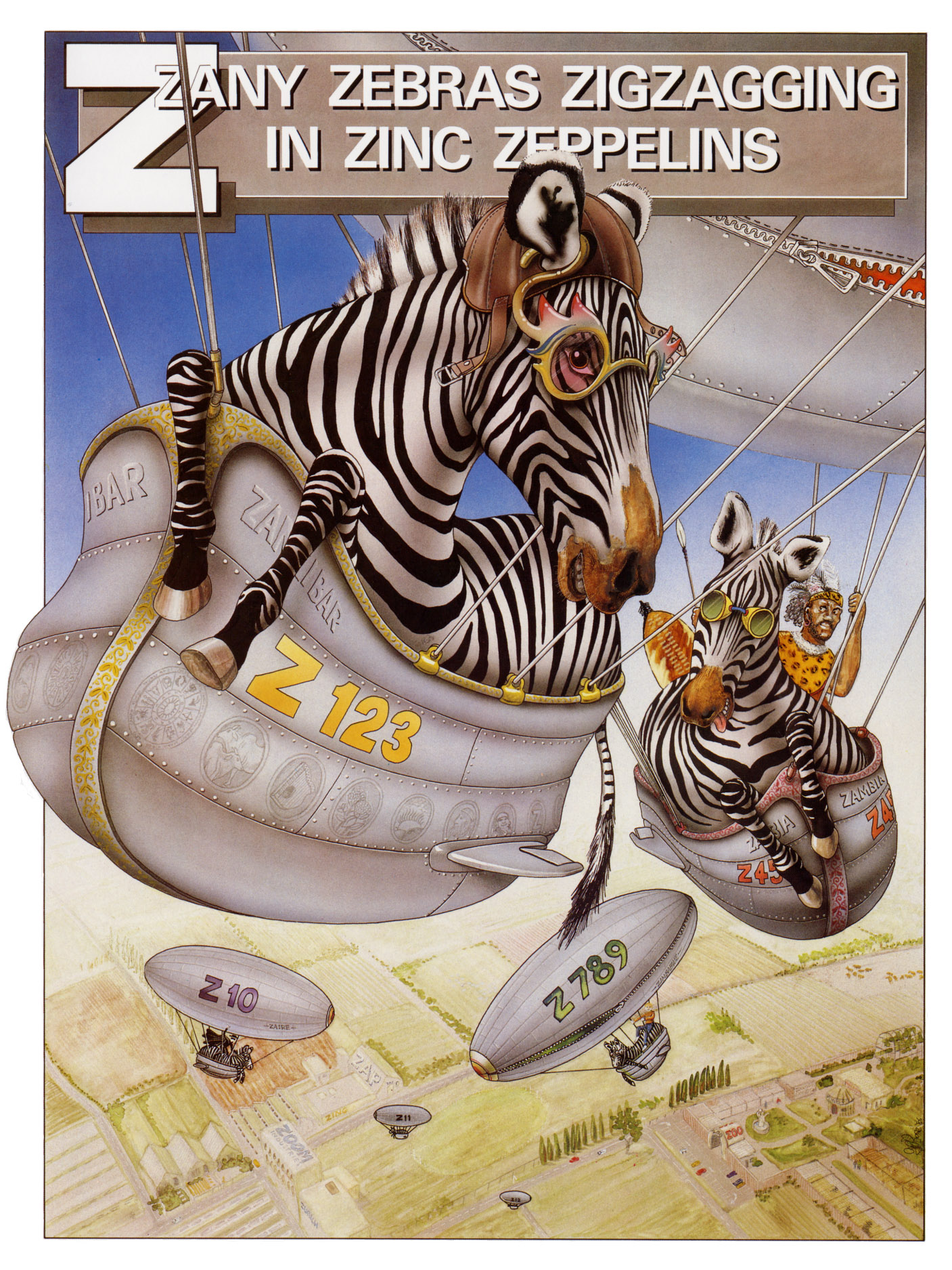 But that's not what the puzzle was asking. If this is the 'Q' page in an alphabet book, the last page is probably 'Z'. So, what 'Z' words can we expect to see there?